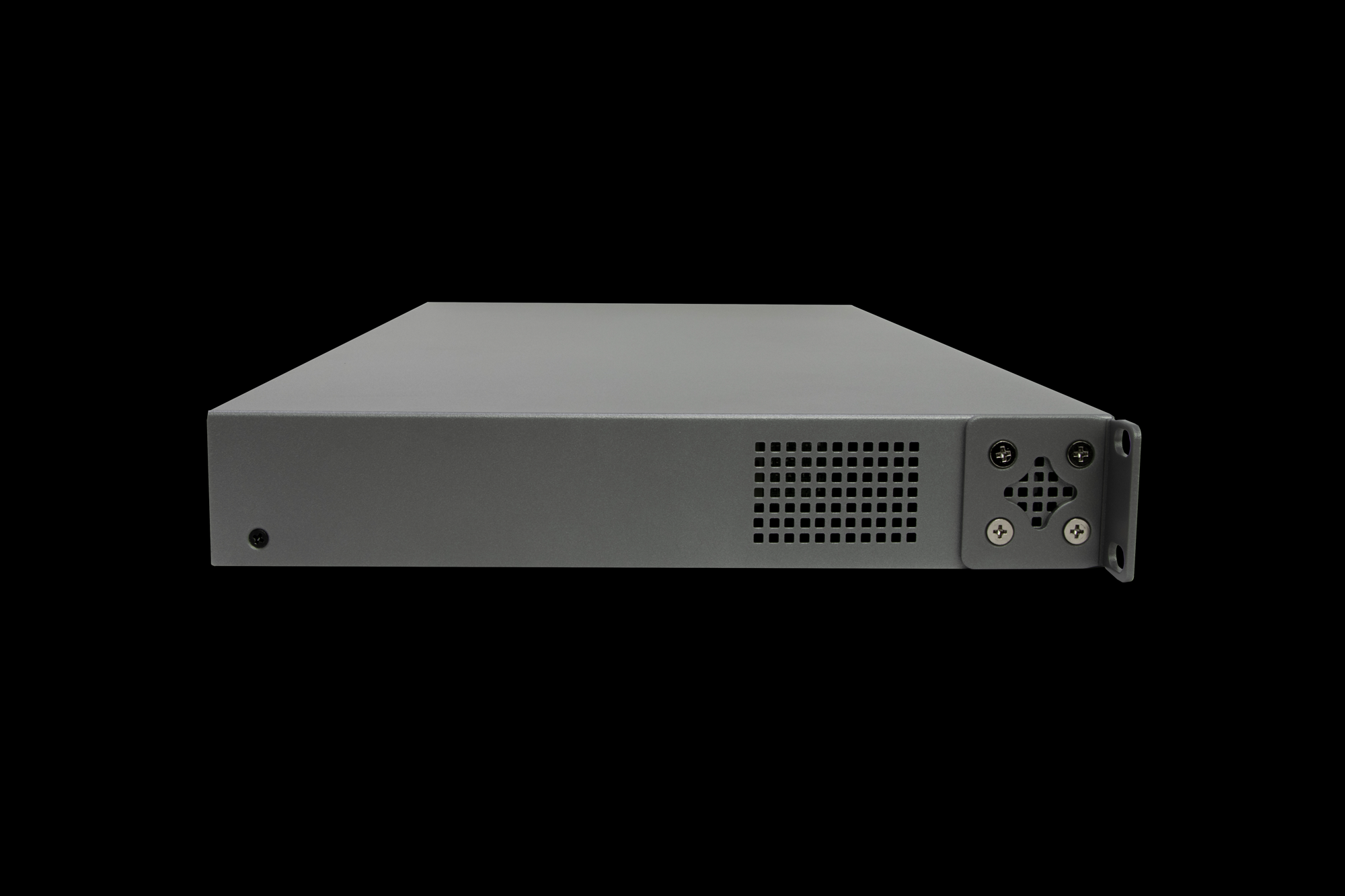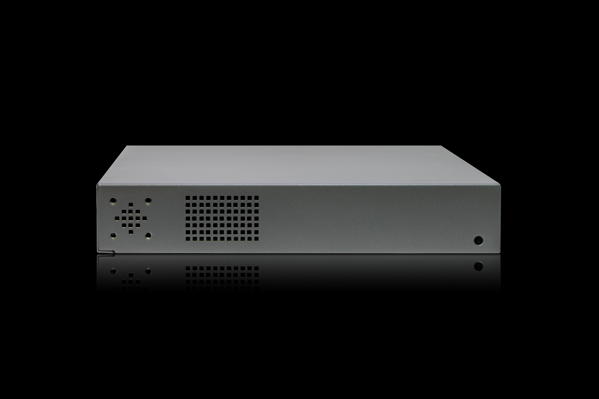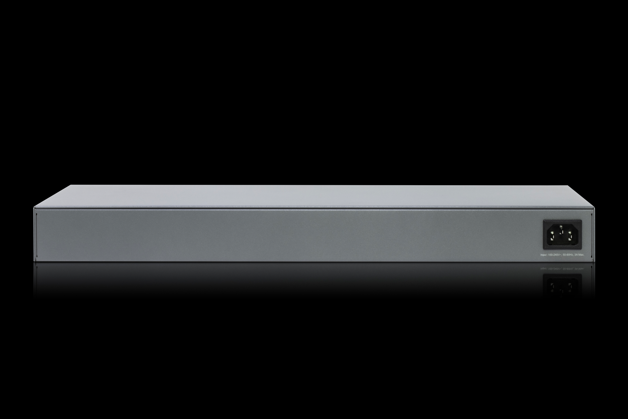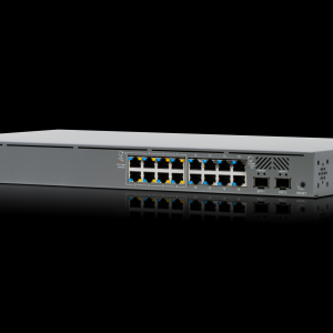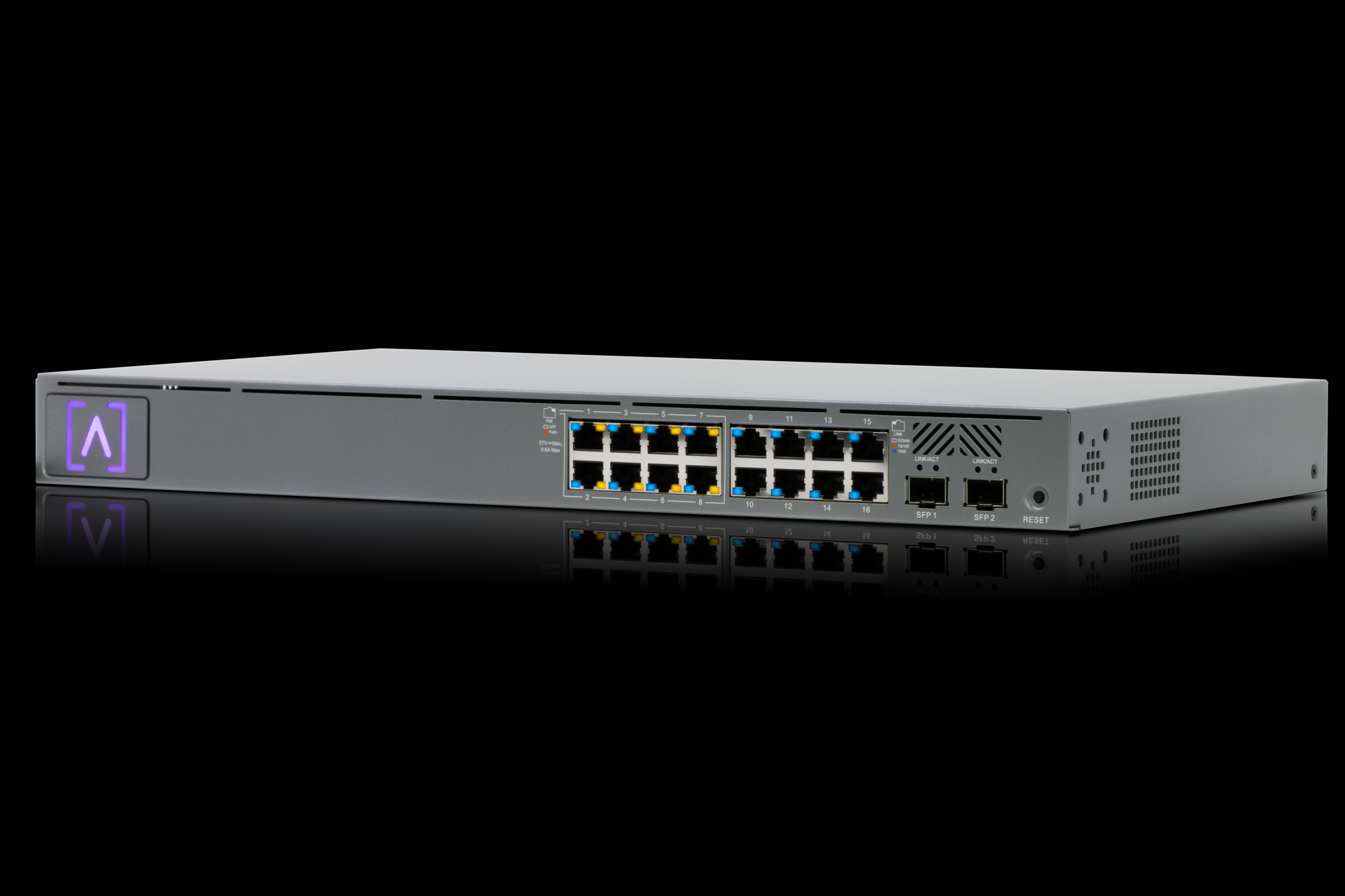 The S16‑PoE is a rackmountable switch with sixteen 10/100/1000 ports, eight of which support PoE+. The S16‑PoE includes two SFP ports. Ethernet Ports – 16, PoE+ Ports – 8, SFP Ports – 2, PoE Budget – 120 W.