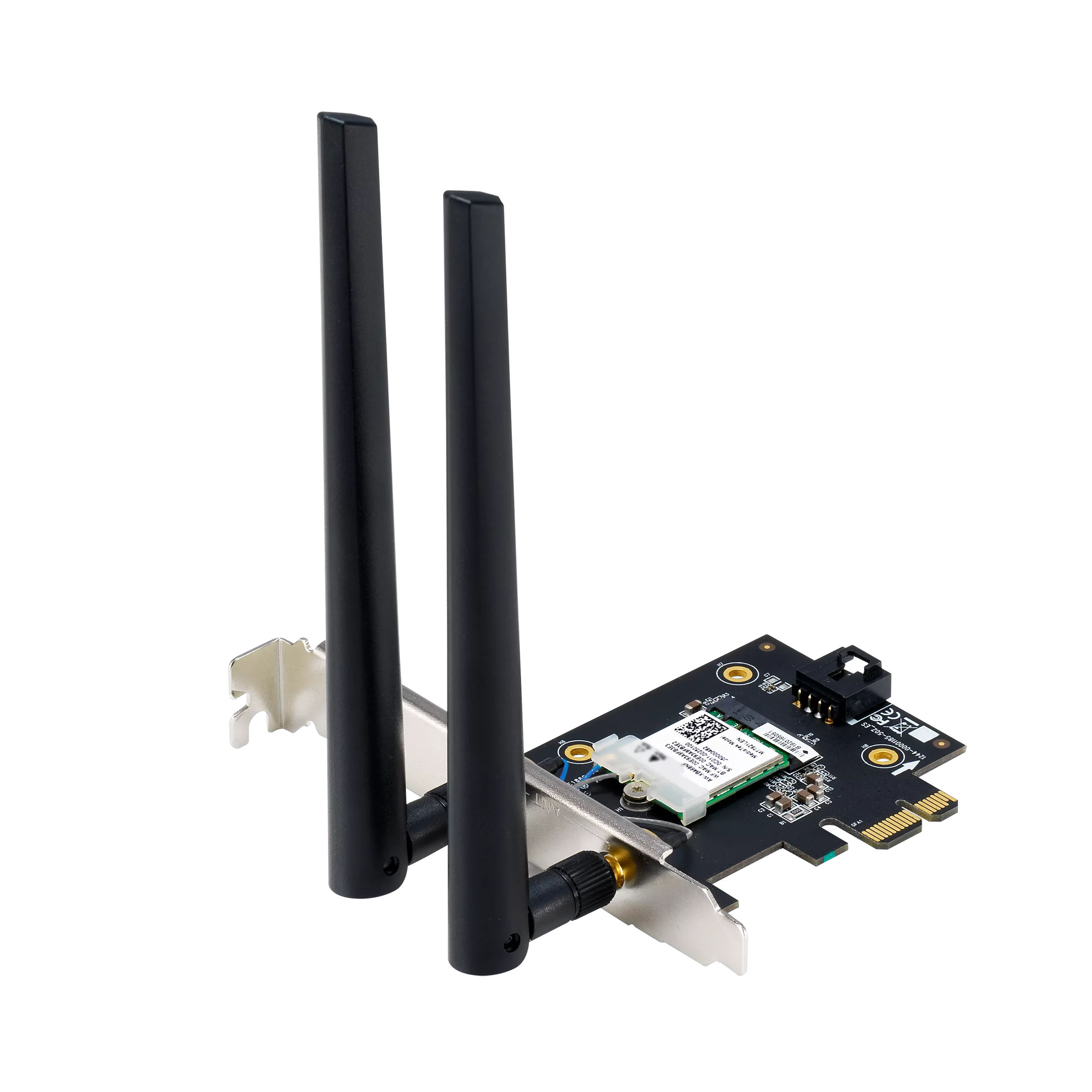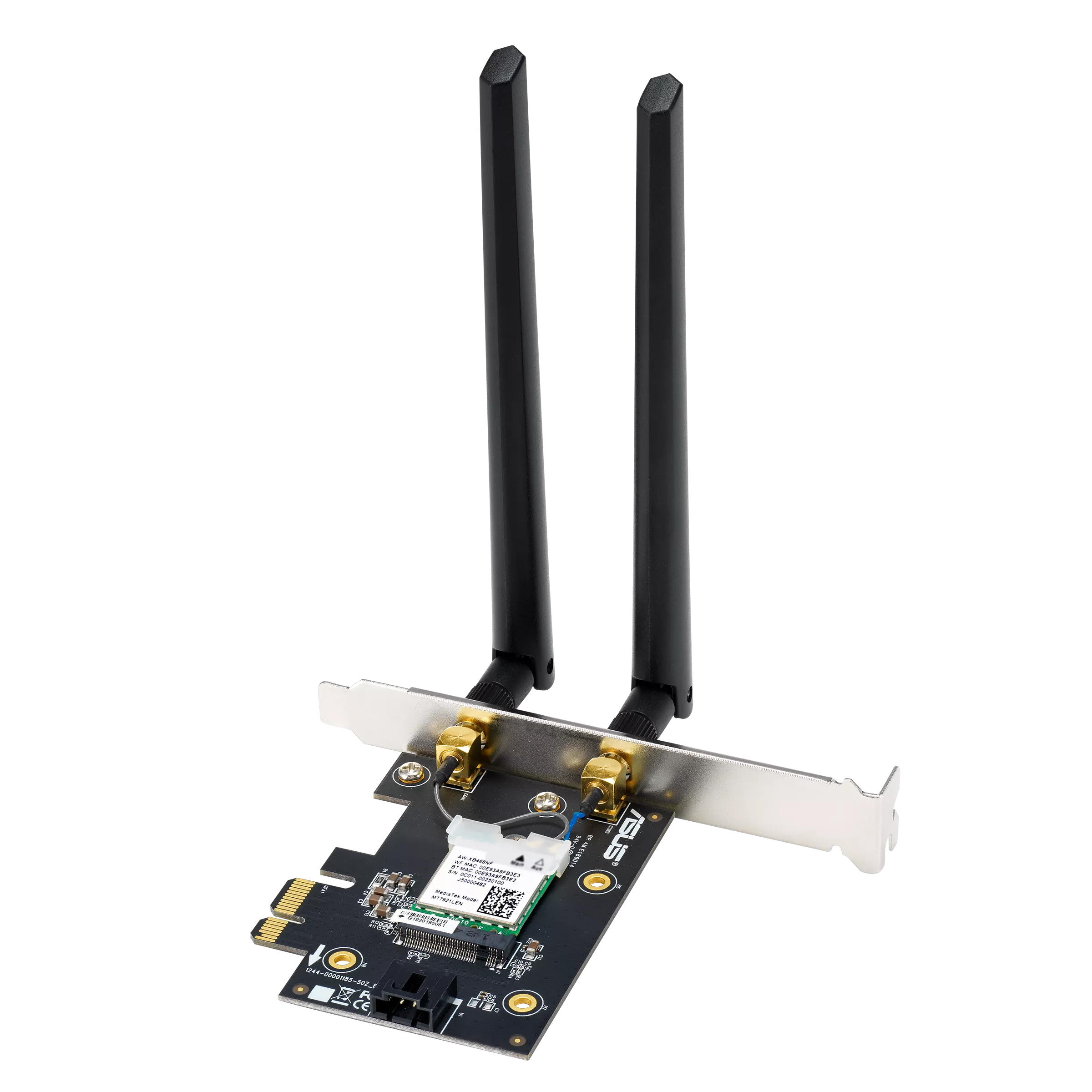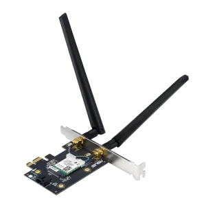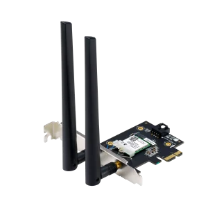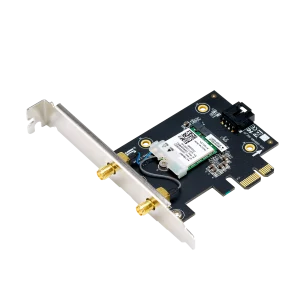 WiFi 7 PCI-E Adapter with 2 external antennas. Supporting 6GHz band, 4096-QAM, Bluetooth 5.4, WPA3 network security