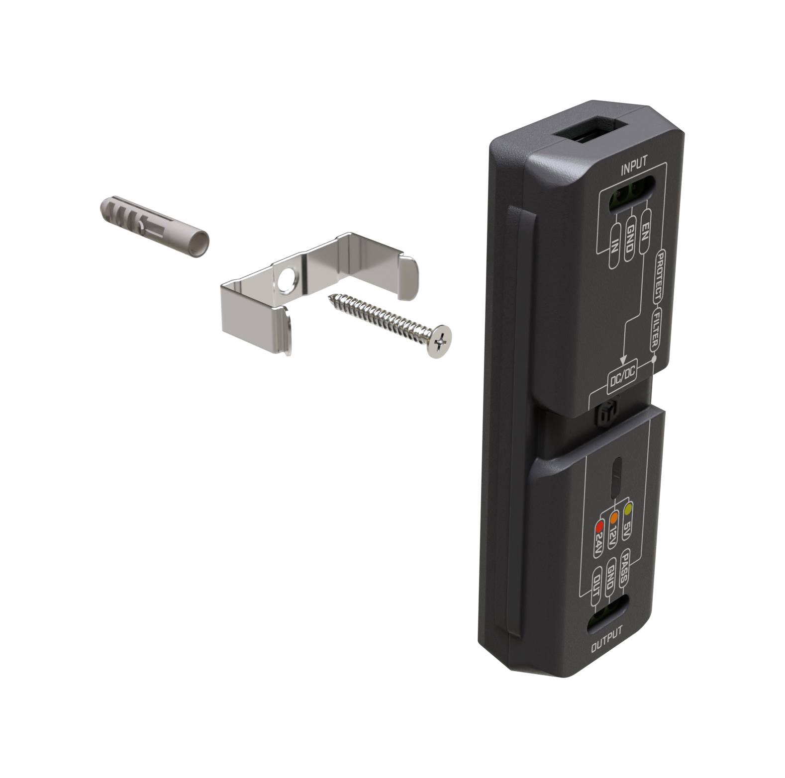 Another layer of protection is the TVS: transient voltage suppressor semiconductor. This combination of layers protect your devices from extreme voltage spikes. We’ve also added active polarity protection, so that your devices stay safe even if you apply the power in reverse by accident. Additionally, there’s a built-in low-pass filter to block all unwanted impulses, and a standard fuse for extra protection.