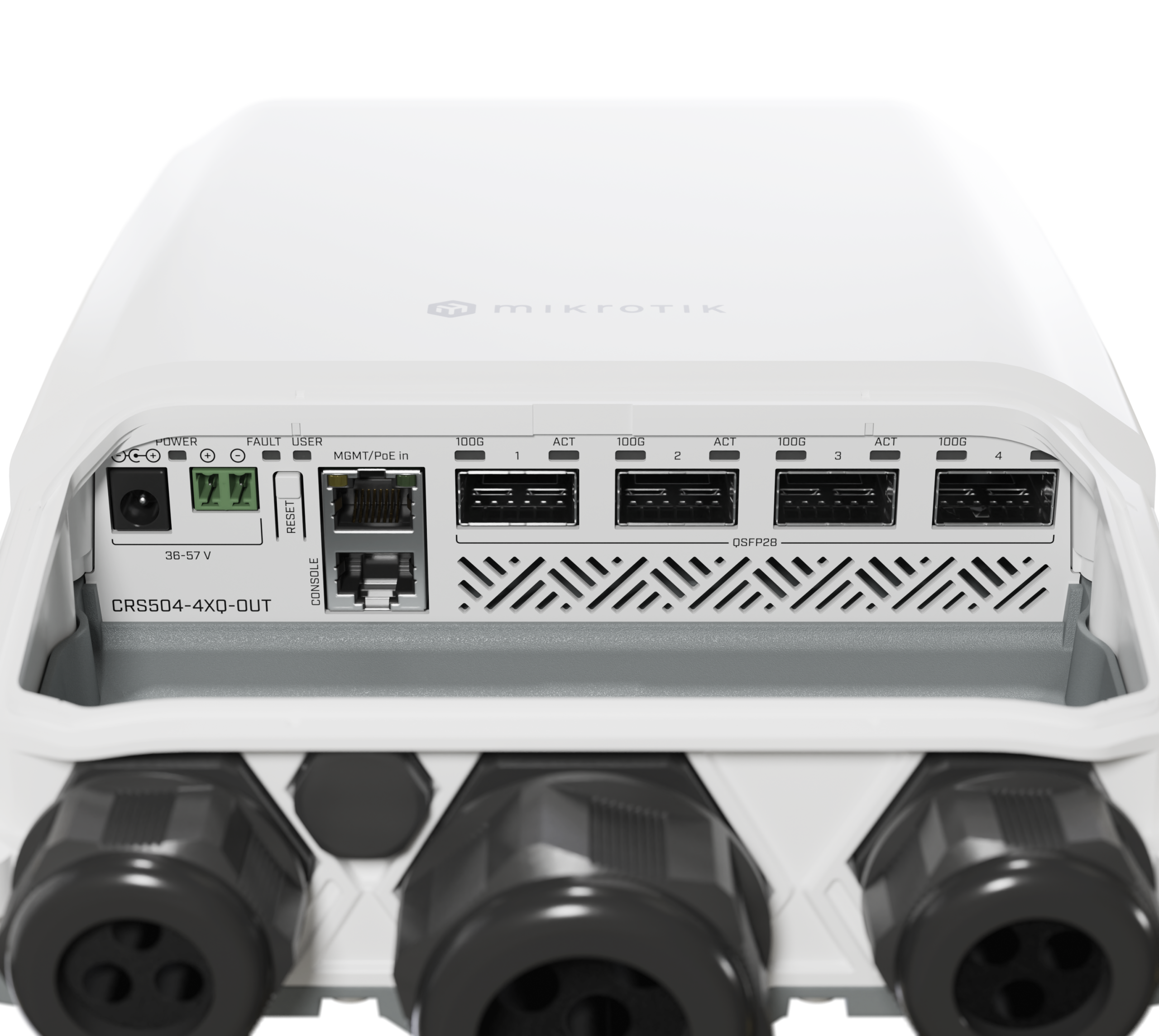 Should high-quality 100 Gigabit connectivity be limited to indoors only? Definitely not! That’s why we created the CRS504-4XQ-OUT: a versatile, cost-effective, ultra-fast weatherproof switch for all your outdoor needs.