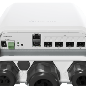 This rugged outdoor switch is perfect for connecting mast devices. Like the mANTBox 52 or the LHG XL 52. Imagine a huge campsite with several guest houses, a food court, and the owner’s cabin. You can connect all the locations with the FiberBox Plus. One of the fiber connections can be used for the mANTBox base station – to provide general connectivity for the guests. Another connection could go to the owner’s house. And the third could be used in the food court – to connect their payment and inventory servers.