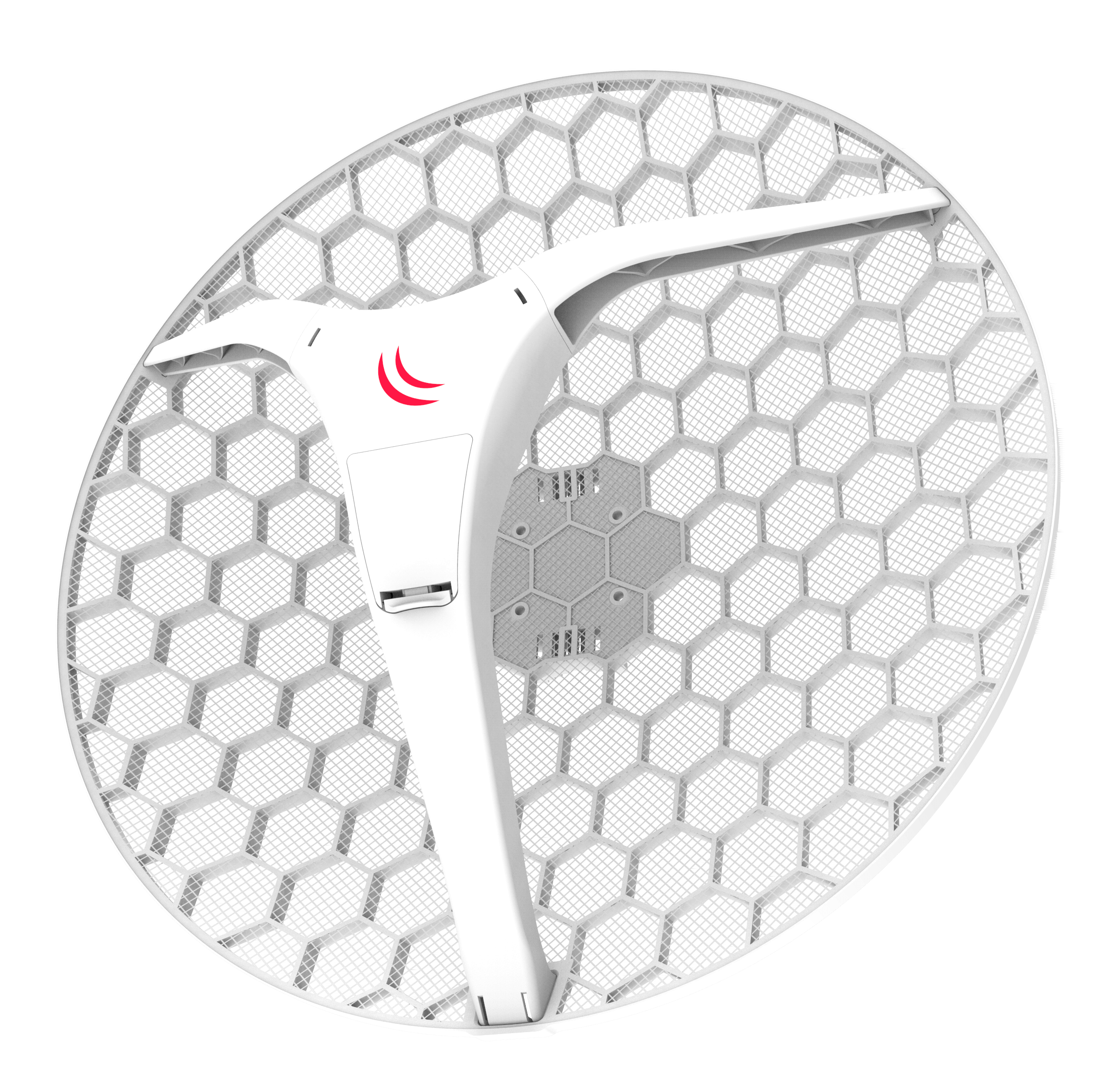 The LHG XL 5 ac is Long Range 5GHz 802.11ac wireless device with an integrated dual polarization 27 dBi grid antenna at a revolutionary price. It is perfect for point to point links or for use as a CPE at longer distances and supports Nv2 TDMA protocol.