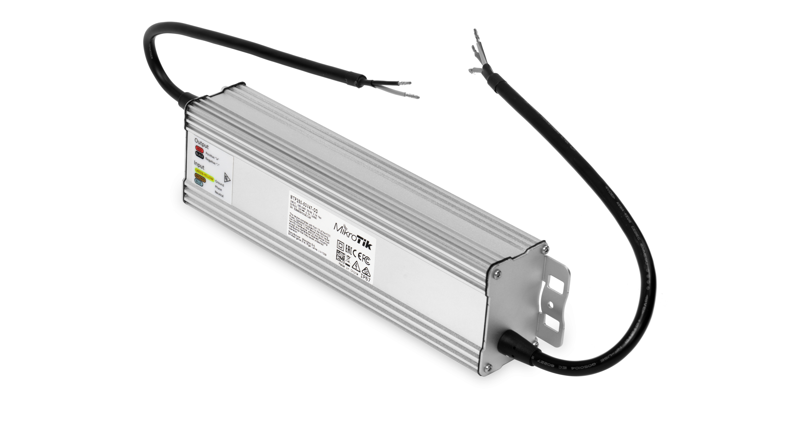 Outdoor 53V 250W AC/DC power supply units for the MikroTik netPower product line. Built for situations when your outdoor switches need that extra juice. Pole/wall mount compatible!