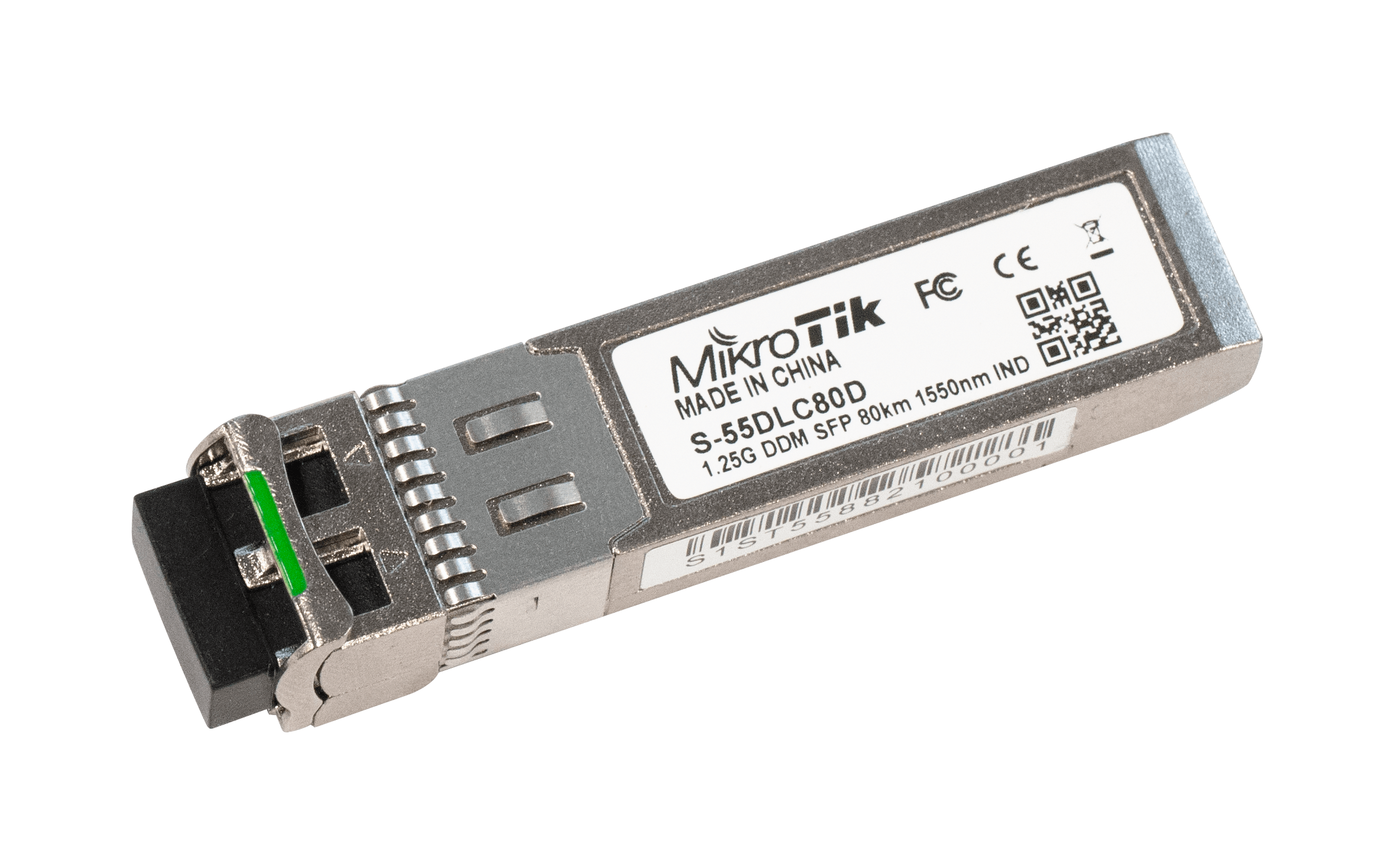 Industrial temperature grade (-40°C to +85°C) SFP 1.25G module with Dual LC connector for long distance 80km links. Compatible with all MikroTik products, that have SFP or SFP+ cages.