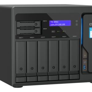 The high-capacity TS-855X has six 3.5-inch SATA drive bays (for HDDs), two 2.5-inch SATA drive bays (for SSDs) and an 8-core processor supporting Intel® QuickAssist Technology (QAT), greatly assisting businesses in deploying a data storage and virtualization environment. The built-in 10GbE/2.5GbE high-speed connectivity helps realize fast data access, backup/restoration, file server, and virtualization applications. Running the QTS operating system as standard, the TS-855X can be switched to use the ZFS-based QuTS hero operating system based on your requirements. The TS-855X will be available and supported by QNAP for an extended period (up to 2030), ideal for businesses requiring matching NAS models deployed in long-term projects.