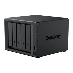 The DS1525+ features built-in 2.5GbE networking with 10GbE option and supports both SATA SSDs and HDDs in 2.5″/3.5″ internal bays, as well as M.2 NVMe drives via M.2 slots for use as cache.