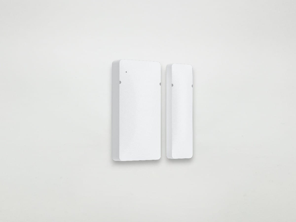 The Tedee Door Sensor detects whether a door is open or closed and displays this status in real time via the Tedee app, alongside the current state of the smart lock. The device consists of two components – a sensor and a magnet – mounted on the door leaf and door frame, on the interior side.