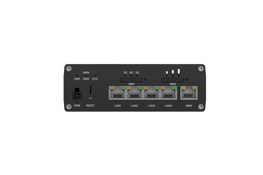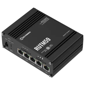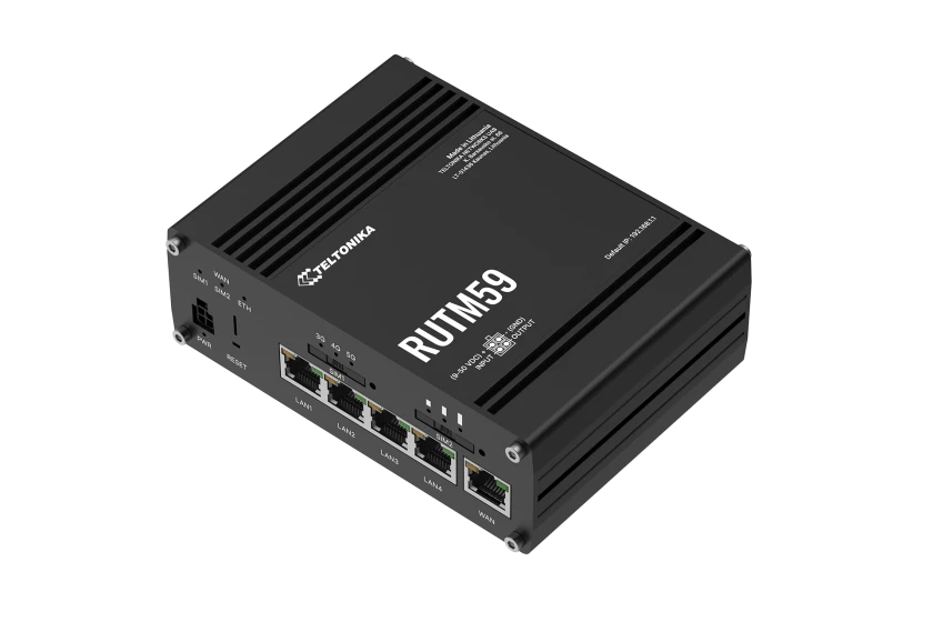 The RUTM59 is a cellular 5G router with ultra-high cellular speeds of up to 3.4 Gbps. This 5G router features dual SIM slots with auto-failover, backup WAN, and other switching scenarios. The RUTM59 is equipped with five Gigabit RJ45 ports, supports both SA and NSA 5G architectures, and is backward compatible with 4G (LTE Cat 19)—ensuring a fast, uninterrupted connection and long-term expandability at affordable pricing.