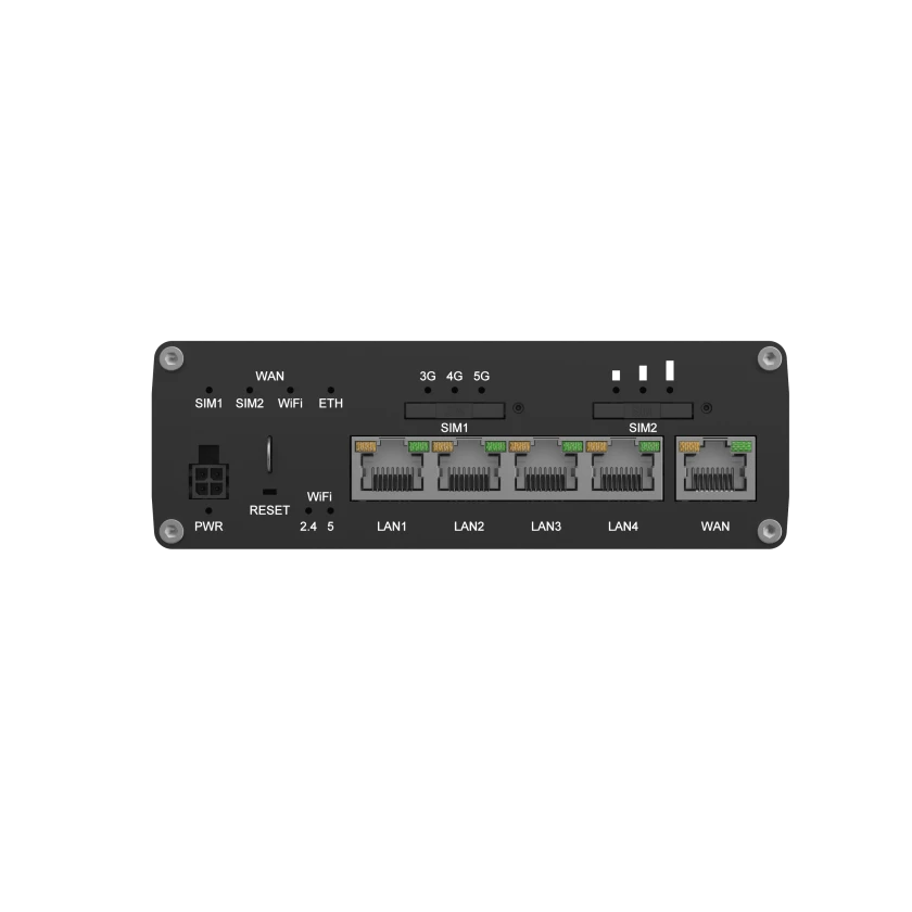 The RUTC50 is a 5G router featuring dual-band Wi-Fi 6 technology with multi-user MIMO, ensuring ultra-high cellular speeds of up to 3.4 Gbps. This 5G router is also equipped with dual SIM with auto-failover, five Gigabit Ethernet ports, and GNSS for precise location tracking. The RUTC50 supports both SA and NSA 5G architectures and is backward compatible with 4G (Cat 20) and 3G, ensuring robust and reliable performance.