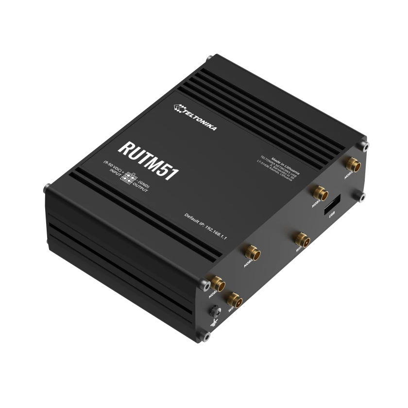 The RUTM51 is a budget-friendly dual-SIM, multi-network industrial 5G router delivering connectivity for data-heavy applications. With five Gigabit Ethernet ports, dual-band Wi-Fi, and auto-failover, it ensures seamless, reliable performance. Backward compatibility with 4G Cat 12 and a versatile range of interfaces make the RUTM51 5G router a smart, future-proof choice for businesses seeking high-speed connectivity at a lower cost.