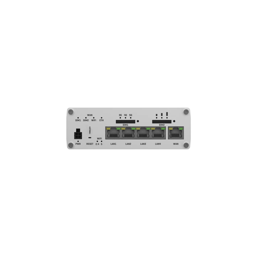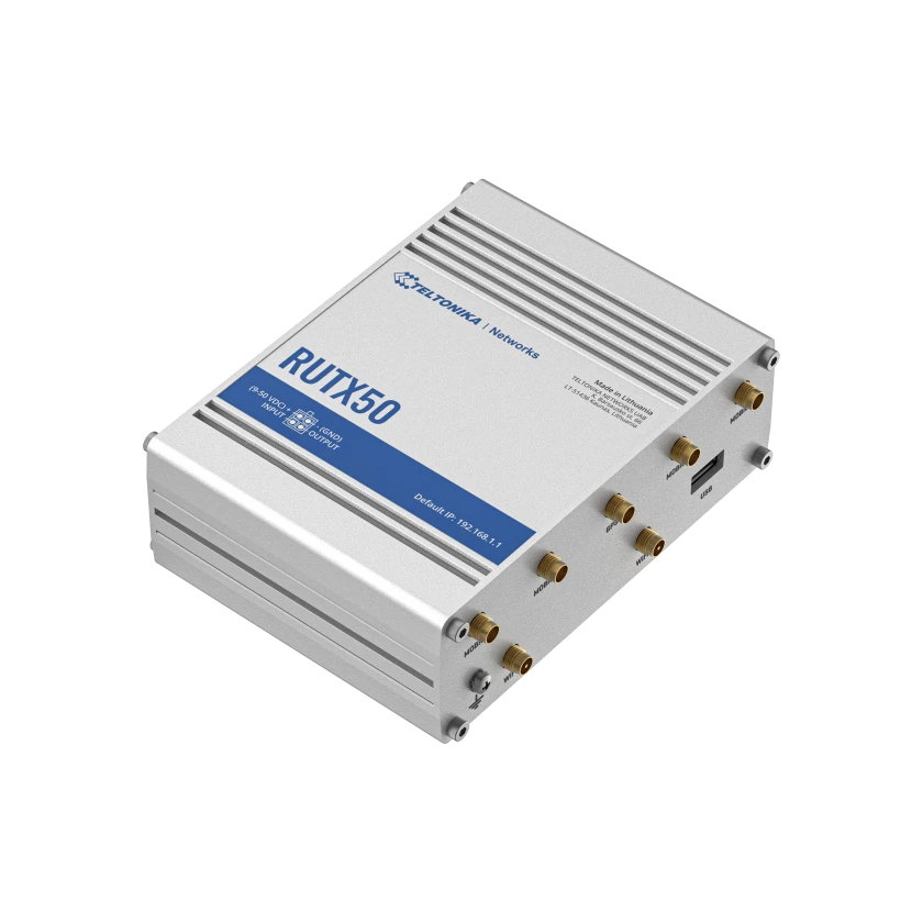 RUTX50 is a dual-SIM multi-network router offering 5G mobile communication for high-speed and data-heavy applications. Together with 5x Gigabit Ethernet ports and dual-band Wi-Fi, it enables reliable data transfer with auto-failover. Backward compatibility and multiple interfaces allow for long-term expandability and upgrading options.