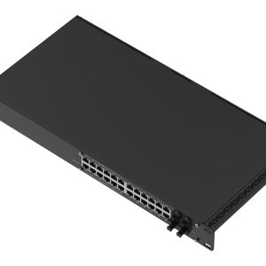The SWM280 is a powerful L2 managed switch with L3 features for advanced network control. Designed for high-performance connectivity, this 24-port switch combines 12 PoE+ ports, 12 Gigabit Ethernet ports, and 4 SFP ports. The PoE+ supply up to 30 W per port and a total power budget of 300 W. The SWM280 supports PROFINET & other industrial protocols, enabling flexibility over management and power supply.