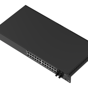 The SWM282 is a high-capacity L2 managed switch with enhanced L3 capabilities, built to simplify network control while delivering power and connectivity at scale. It features 24 PoE+ ports, supplying up to 30 W per port with a total power budget of 300 W, and 4 SFP ports. With support for PROFINET and other industrial protocols, this 24-port switch is an ideal choice for enterprise networks and IIoT solutions.