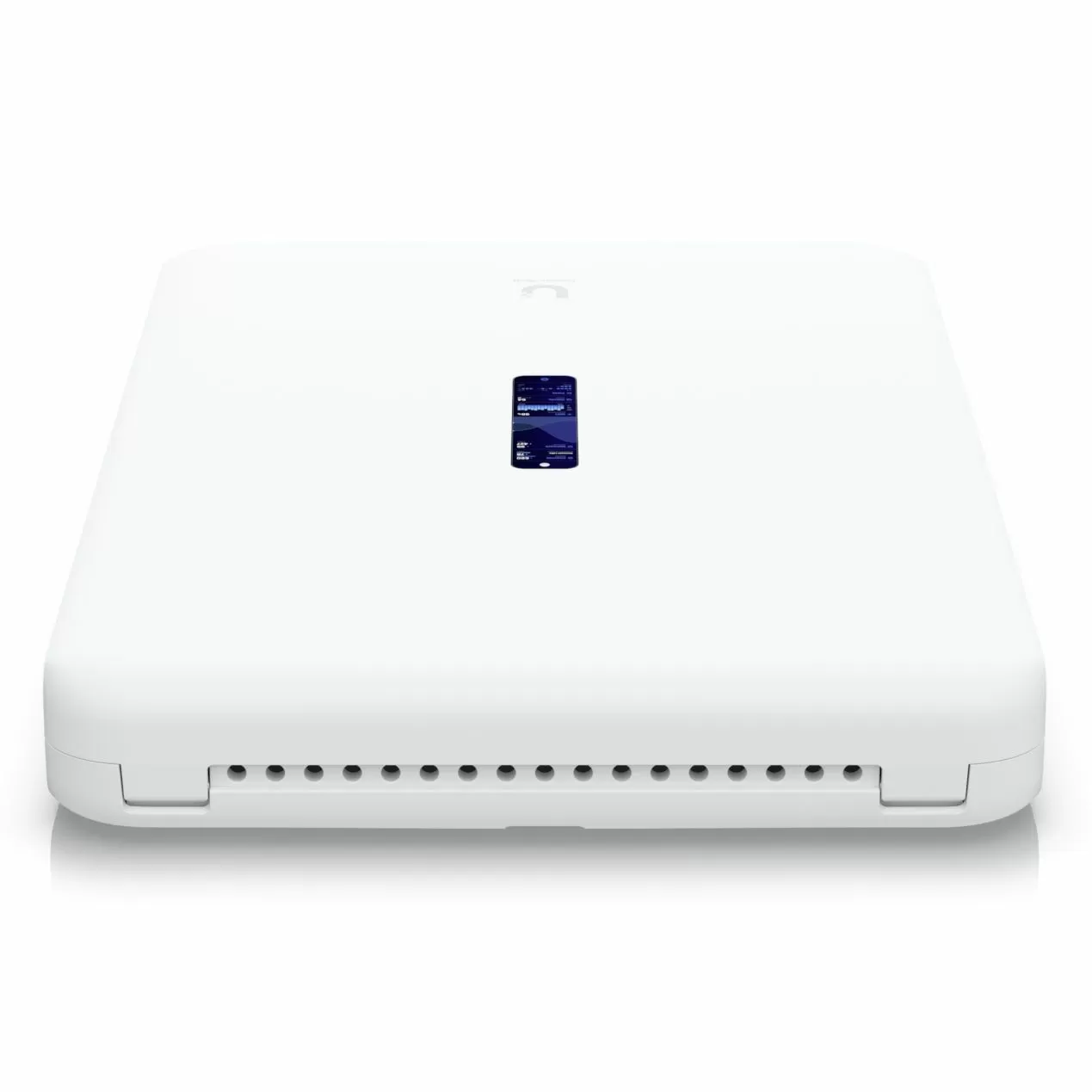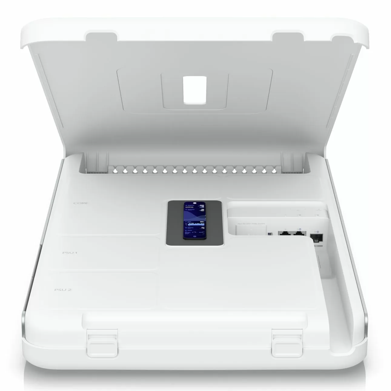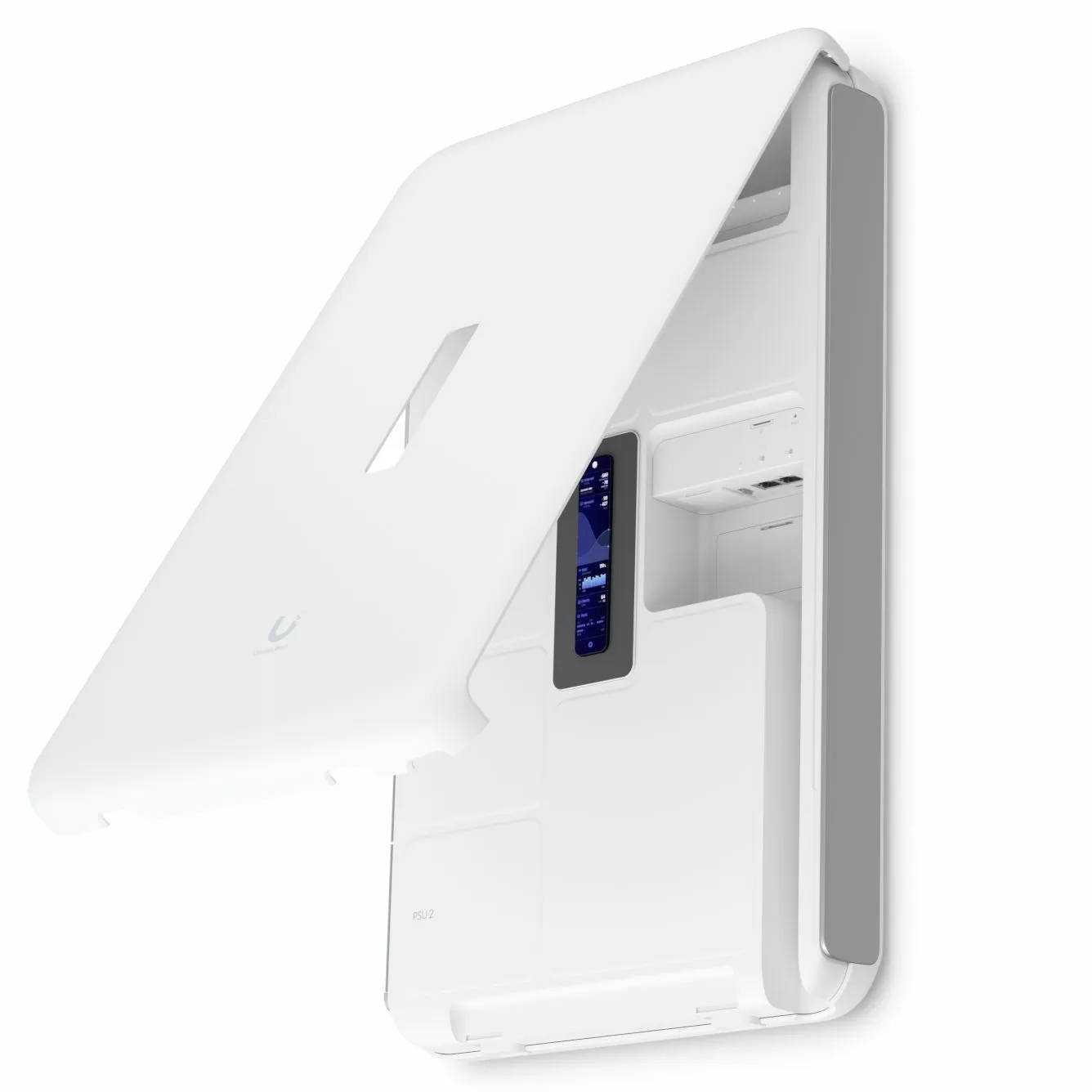 The Dream Wall is a powerful, wall-mounted UniFi OS Console designed to be a standalone, space-saving deployment hosting solution. This feature-rich, next-gen console is equipped with (17) GbE RJ45 ports, including (12) with PoE output[(4) PoE, (4) PoE+, and (4) PoE++], (3) multi-gigabit WAN/LAN ports, and a dual-band Wi-Fi radio with a 2.7 Gbps aggregate throughput rate to give you the power to build reliable, fast networks that support a variety of local and remote clients. The Dream Wall also has a 1.3″ LCM color touchscreen for convenient status monitoring and a built-in Bluetooth management radio to expedite your setup and configuration process via the UniFi Network web or mobile application. UDM is equipped with Micro SIM slot that requires a memory card with at least 128GB of storage. The Dream Wall comes with one pre-installed PSU.