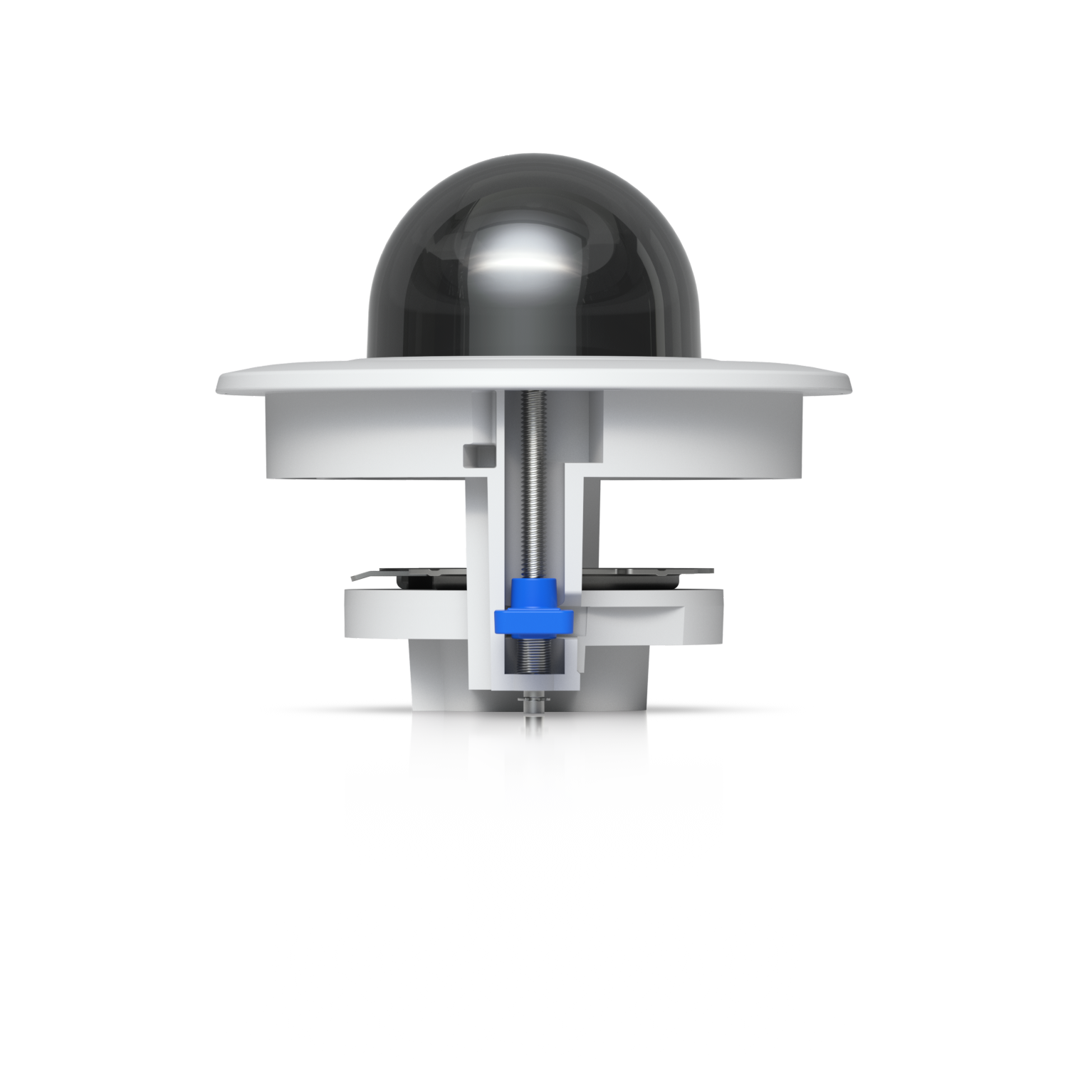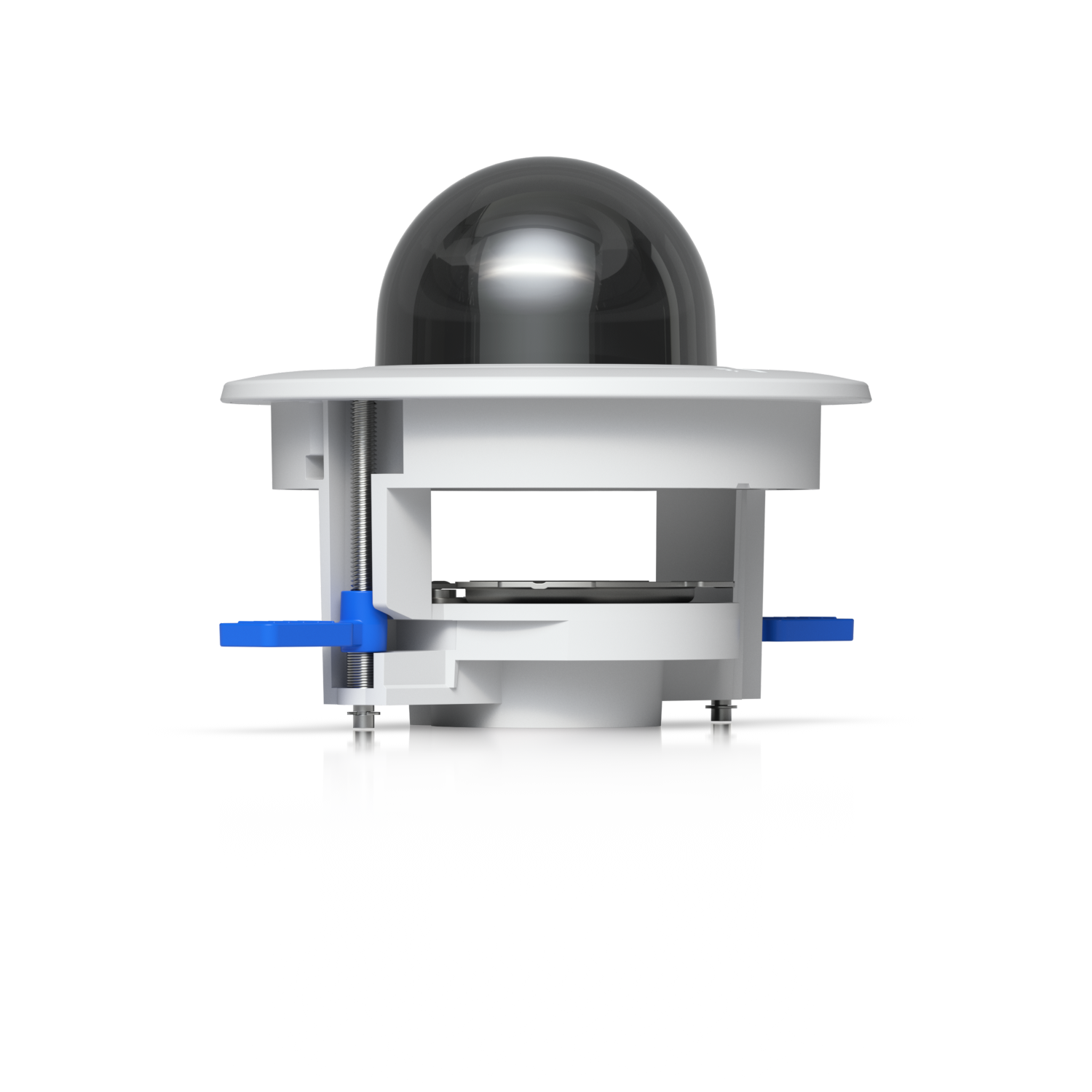 Dome camera mounting accessory for recessed installation into a wall or ceiling with a smoked bubble for enhanced discretion.
