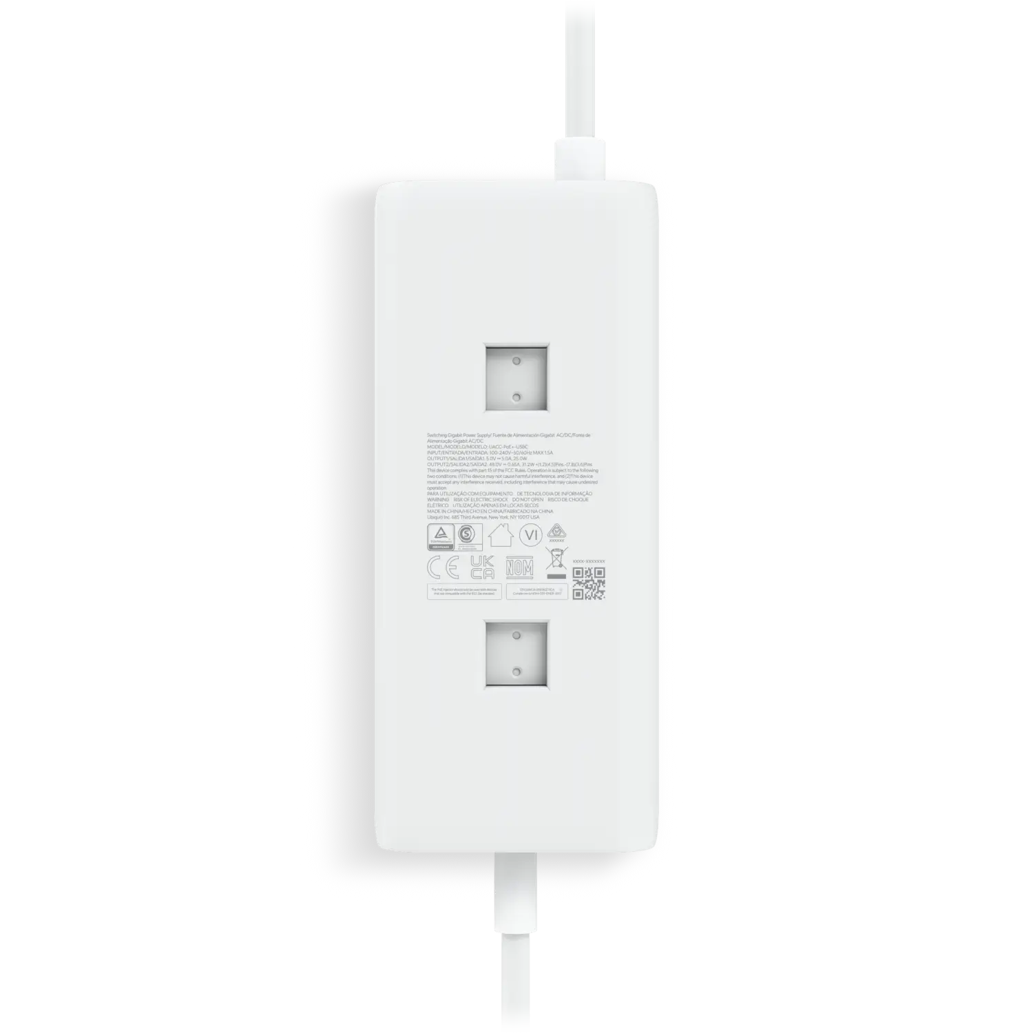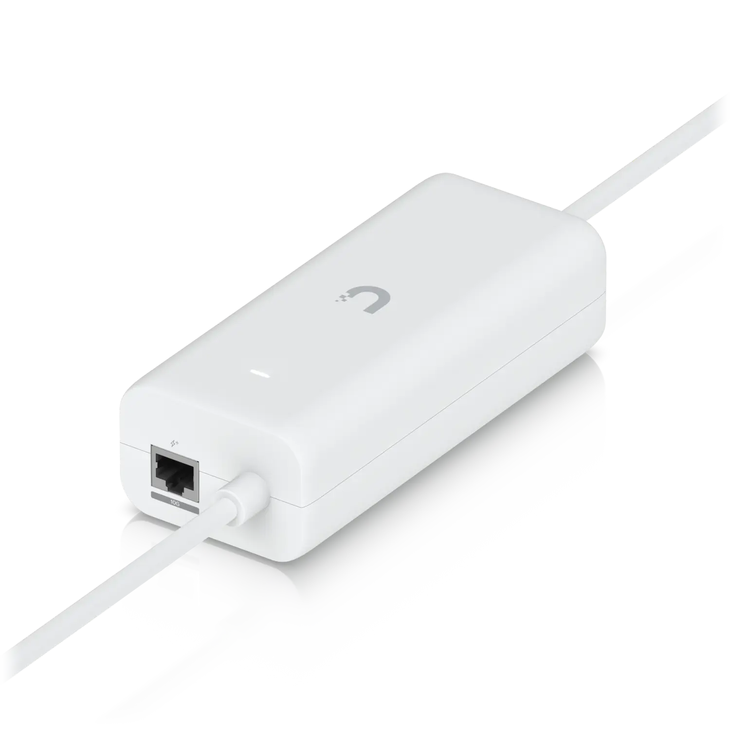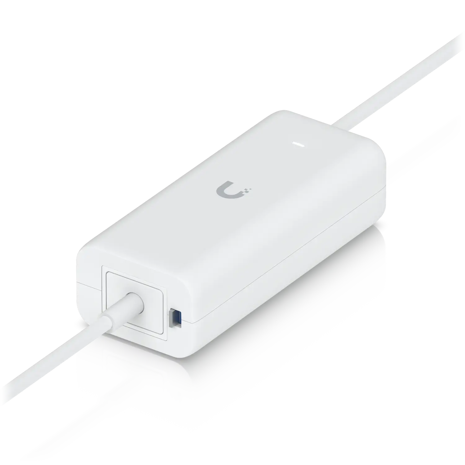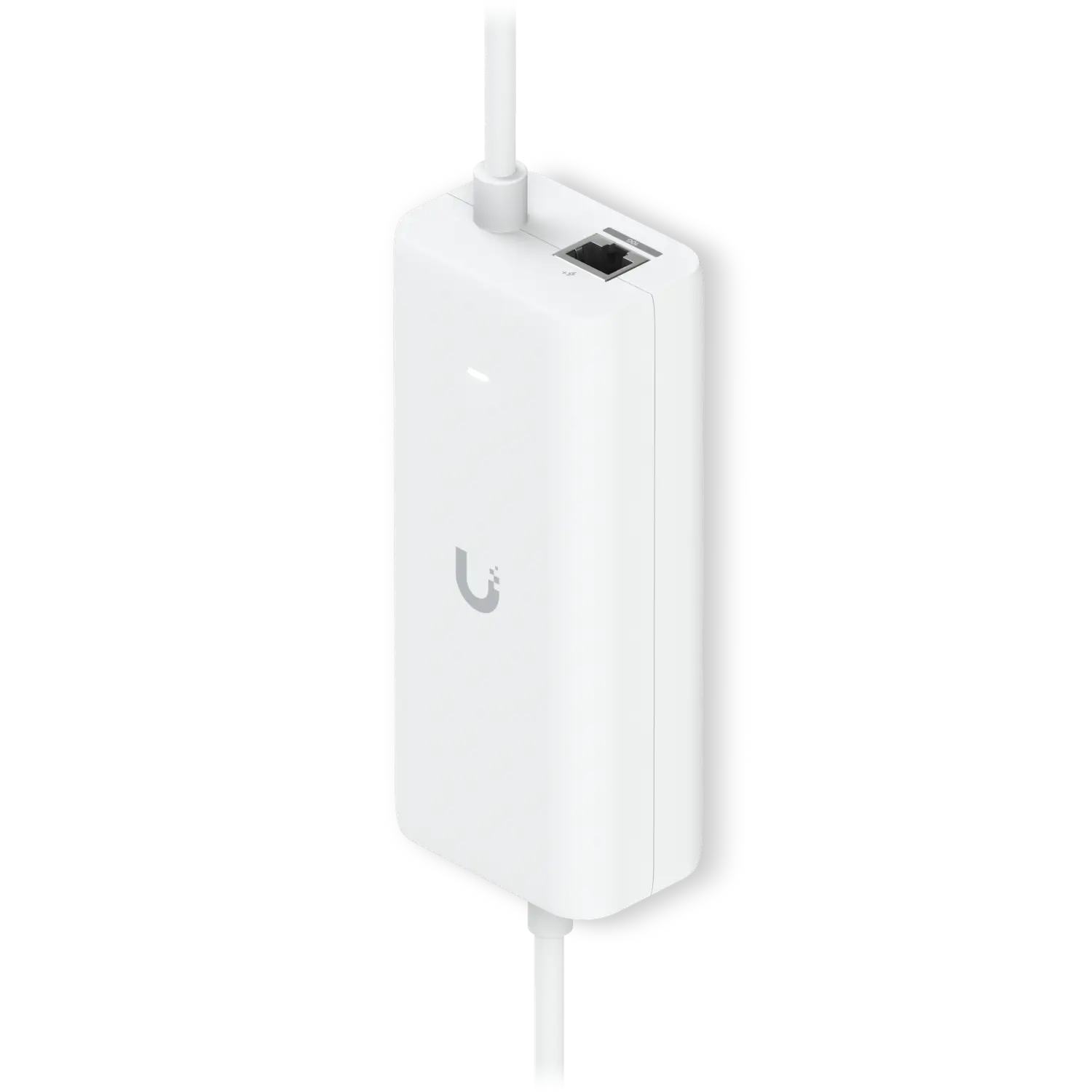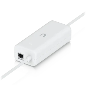 An AC adapter with integrated PoE, enabling the UniFi Cloud Gateway device to support PoE output on a single port.