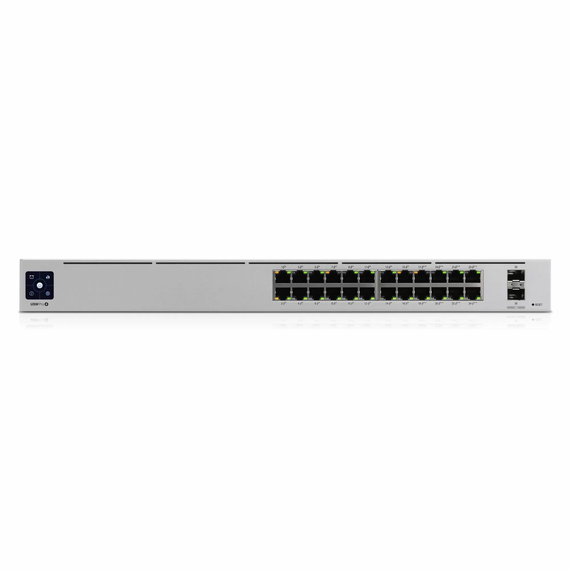The UniFi Switch Pro 24 PoE is an improved version of the already well-proven 24-port switch from the same product line. In addition to the hardware improvements, there are several innovations aimed at improving usability. The main difference between the UniFi Switch Pro 24 PoE and the basic version is a powerful power supply capable of delivering up to 450W. Thanks to this feature, the model has support for 802.3bt on ports 17 to 24, with a maximum power supply for subscriber equipment up to 60 watts. POE+ distribution is possible on ports 1 through 16.
