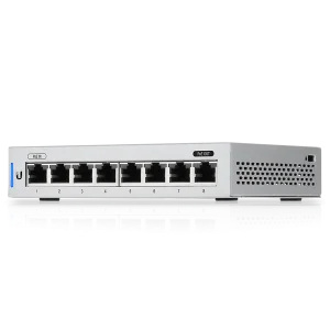 The Switch 8 (US 8) is a fully managed switch with (8) GbE RJ45 ports, including (1) PoE passthrough port which can provide up to 12W to a UniFi access point or other PoE device. The US 8 can be powered with either PoE+ or the included 24W, AC/DC power adapter, and offers a 8 Gbps total, non-blocking line rate. This switch can be monitored or configured from anywhere with the powerful, intuitive UniFi Network web application and mobile app.