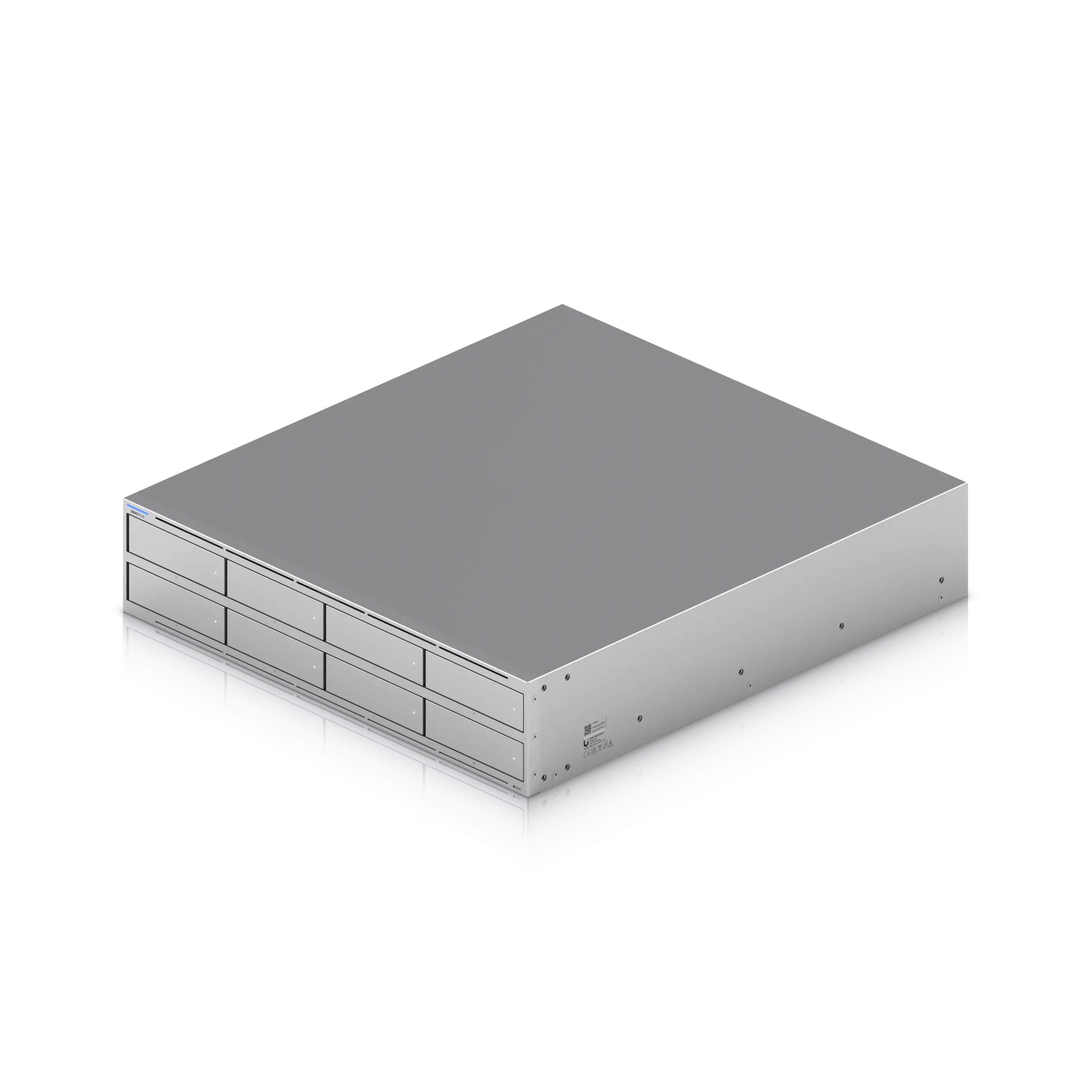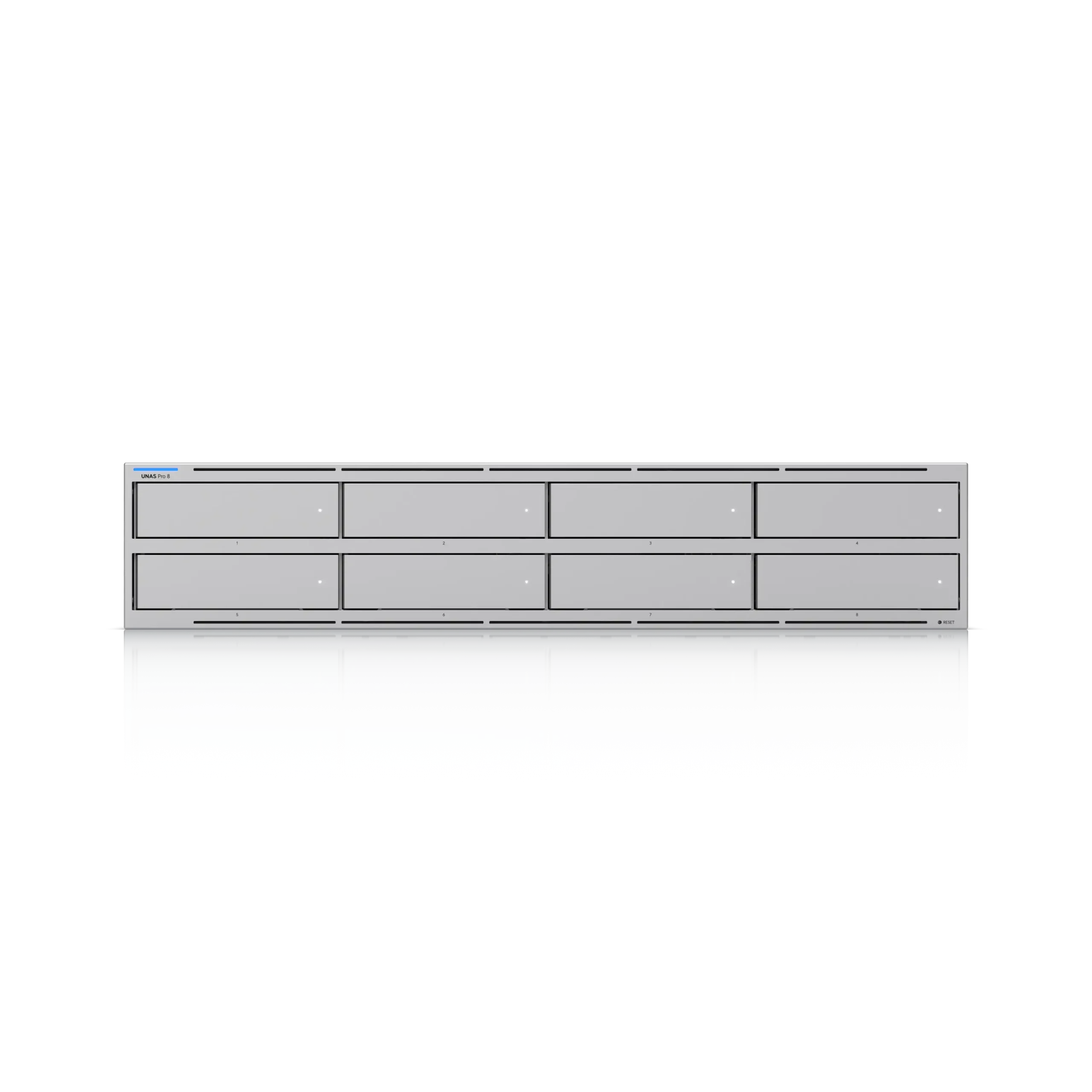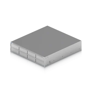 2U rack-mount NAS with (8) 2.5/3.5″ HDD bays and (2) M.2 NVMe SSD cache slots, delivering faster access, lower latency, and high-availability 10 Gbps networking for large-scale file storage and sharing.