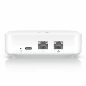 The UXG-Lite is equipped with a dual-core ARM Cortex-A53 processor clocked at 1 GHz and has 1 GB DDR3L memory, ensuring that it can handle demanding network tasks efficiently. It features one Gigabit Ethernet (GbE) WAN port and one GbE LAN port, offering high-speed connectivity options. The device is powered via a USB Type-C connection, supporting a voltage range of 100–240V, and has a maximum power consumption of 3.83W, making it energy efficient.