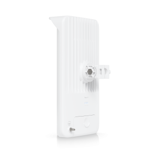 60 GHz + 5 GHz multipoint base station featuring 90-degree sectoral coverage, 31-client capacity, 2.7 Gbps symmetrical speed, and antenna connectors for 5 GHz range extension.