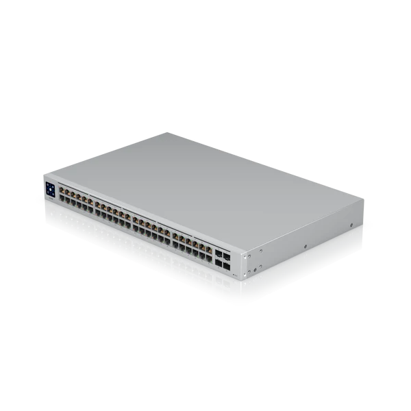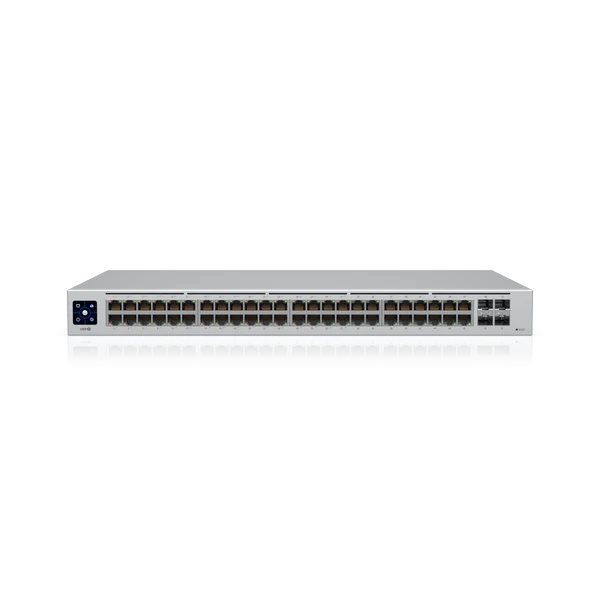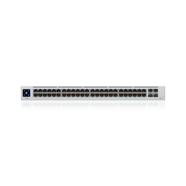 The Switch 48 PoE (USW 48 PoE) is a fully managed switch with (48) GbE RJ45 ports, including (32) GbE, PoE+ ports, and (4) 1G SFP ports. The versatile USW 48 PoE provides Gigabit PoE links to Ethernet devices while also supplying Gigabit fiber uplink options fit for an enterprise network. The switch also offers an extensive suite of Layer 2 switching protocols, including port-specific operation modes (switching, mirroring, or aggregate), and features a 1.3″ LCM color touchscreen that concisely displays key system and connection insights. This switch can also be monitored or configured from anywhere with the powerful, intuitive UniFi Network web application and mobile app.